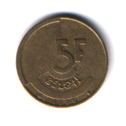 Бельгийская монета в 5 франков 1986 года. На одной стороне,