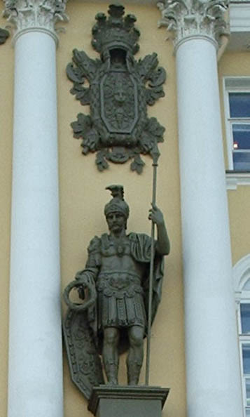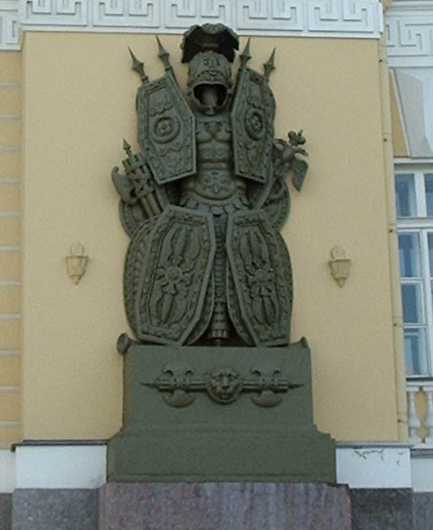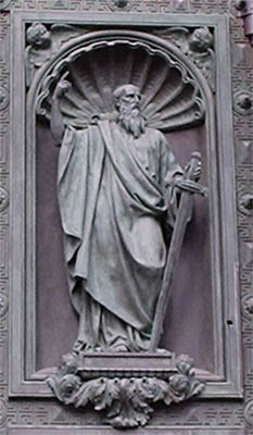 Фигура святого с мечом на дверях Исаакиевского собора.
